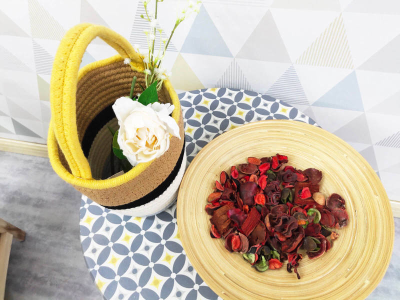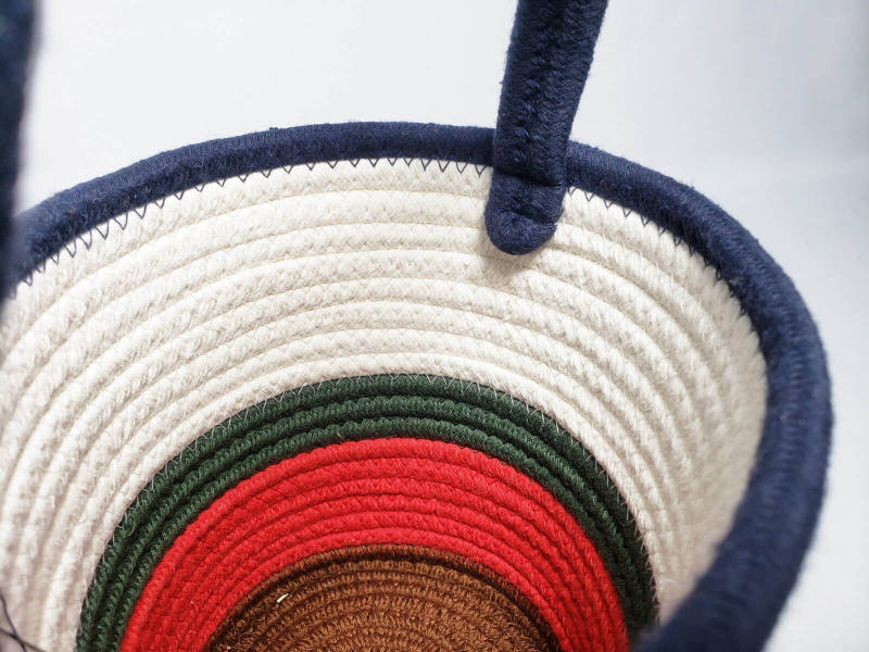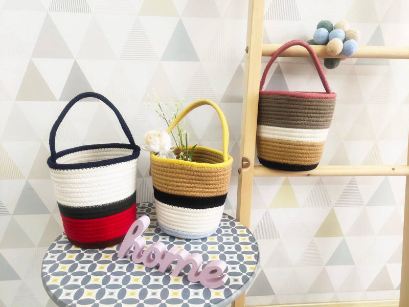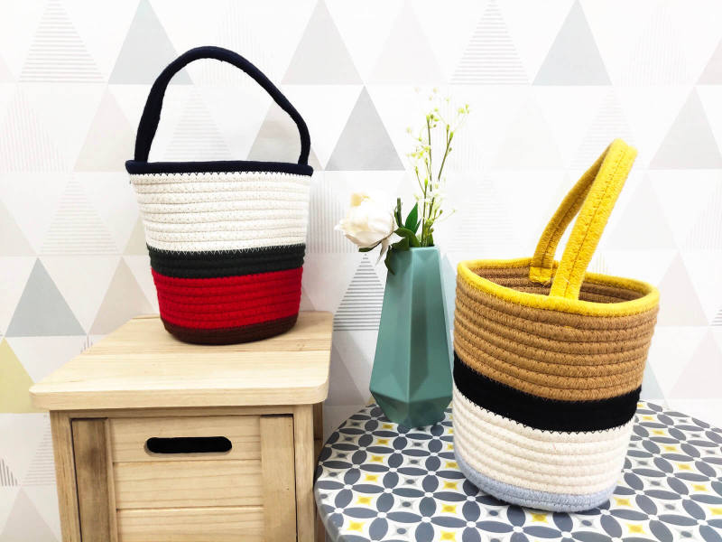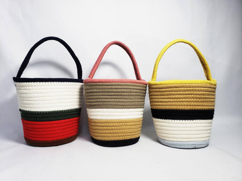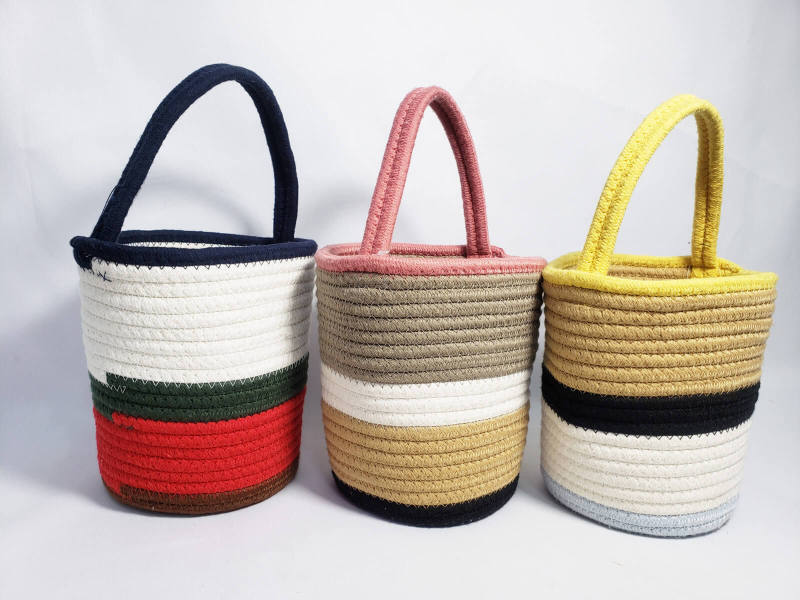 All stitched handmade cotton rope handbag, soft and durable, stand up after unfolded. Have adornment and store function in the home, to make life more beautiful and convenient. Lightweight and easy to carry, easy to move or take away.