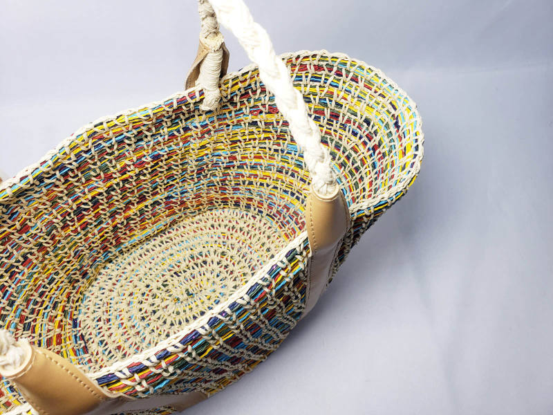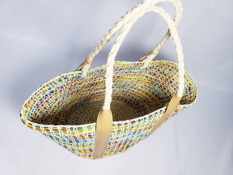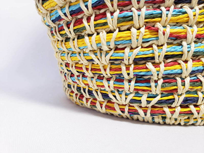 This item is made from paper rope material. It can be used with any other material. It looks natural, beautiful, and can be made in any color you want. Lightweight and easy to carry,easy to move or take away and use for storage anything.