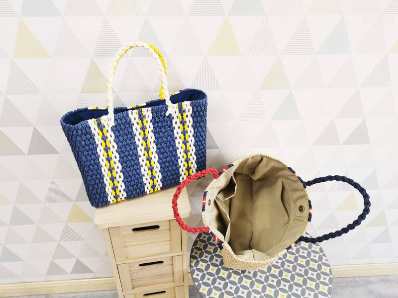 This item is made from paper rope material. It can be used with any other material. It looks natural, beautiful, and can be made in any color you want. Lightweight and easy to carry, easy to move or take away and use for storage anything.