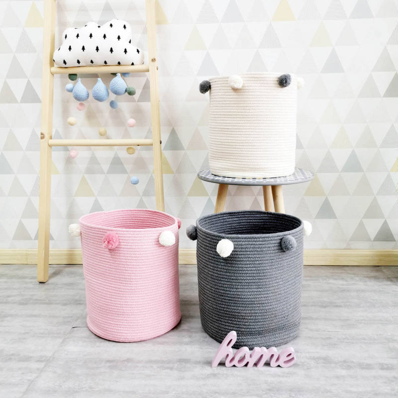 All stitched handmade cotton rope basket, soft and durable, stand up after unfolded. Have adornment and store function in the home, for the life more beautiful and convenient. Perfect for organizing toys, sundries, clothing and more and cutting down on clutter.