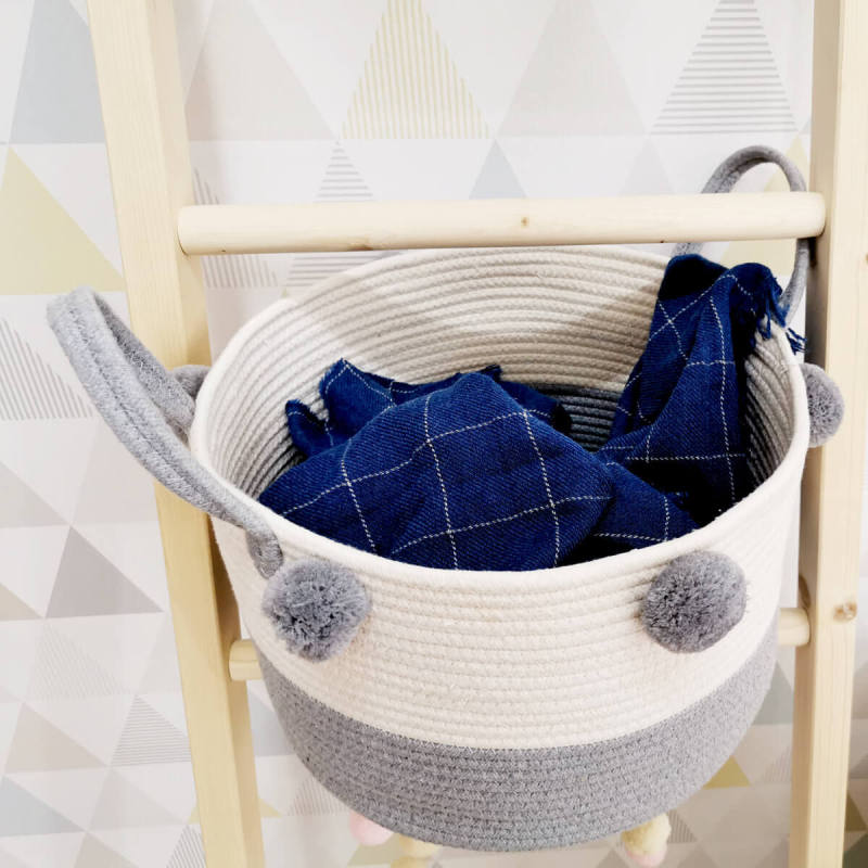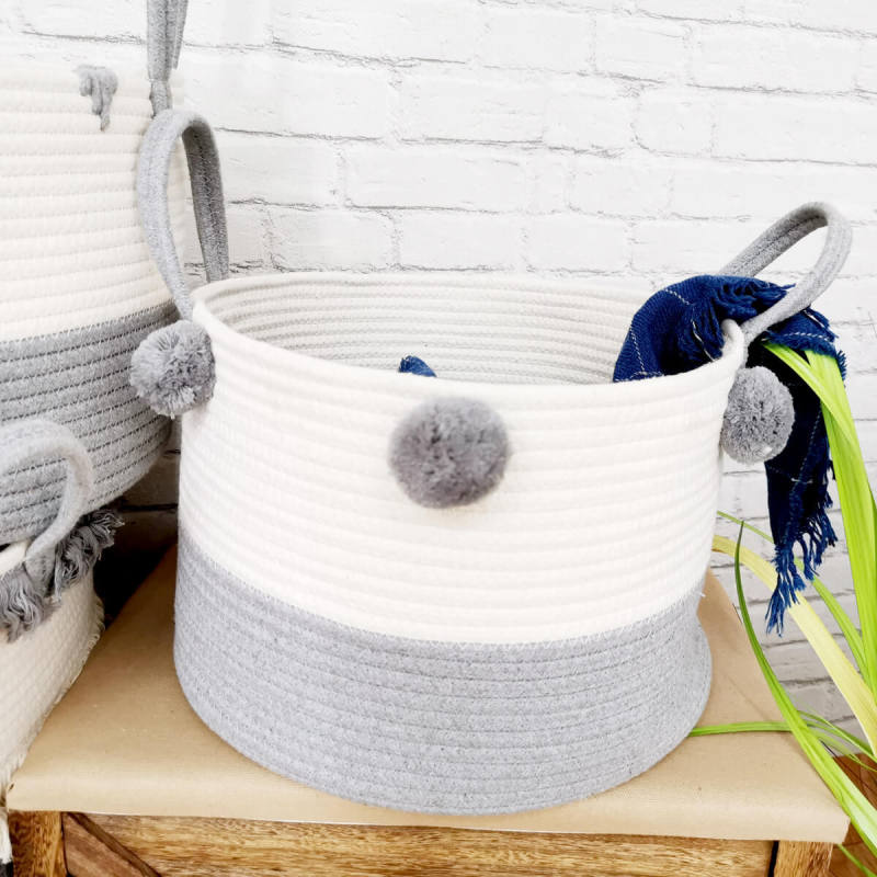 All stitched handmade cotton rope basket, soft and durable, stand up after unfolded. Have adornment and store function in the home, for the life more beautiful and convenient. Perfect for organizing toys, sundries, clothing and more and cutting down on clutter.