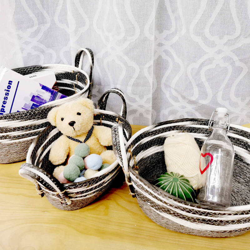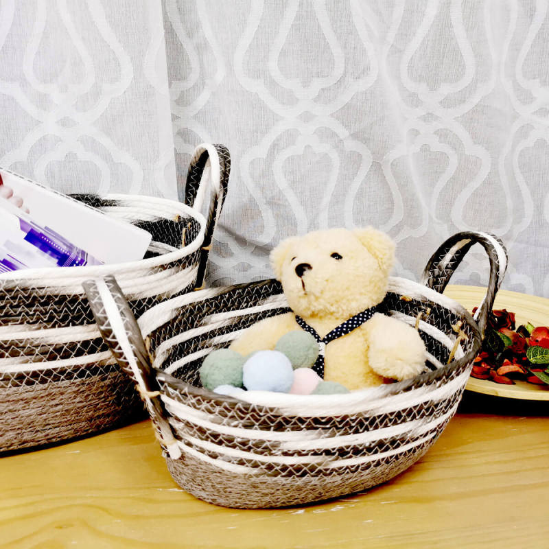This item is made from paper rope material, It can be used with any other material. It looks natural, beautiful, and can be made in any color you want. Lightweight and easy to carry, Easy to move or take away and use for storage anything.